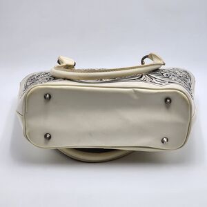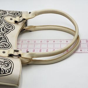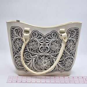 Trinity Ranch Western Floral Embossed Leather White Tote Bag
