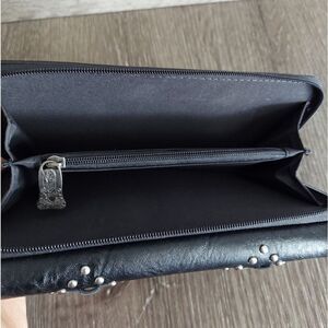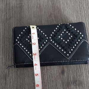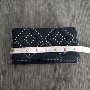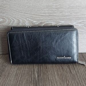 Trinity Ranch line by Montana West, this partial genuine leather wallet has: