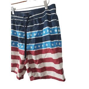 Trinity Swim Trunks Large Mens Red White Blue Patriotic Pockets Unlined Swim