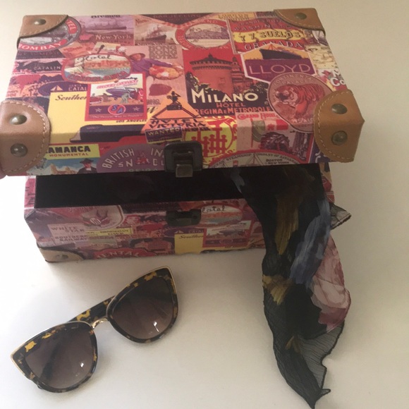Check out my other listings for a smaller matching trinket box, the sunglasses & scarf in the 1st photo!