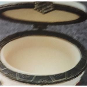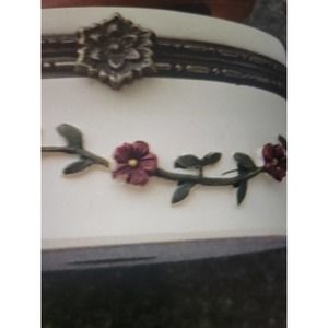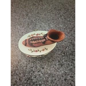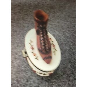 Hand painted trinket box adorned with a vintage style shoe. Great for holding ring or earrings. Hinged lid. Used but in great condition. 101.43