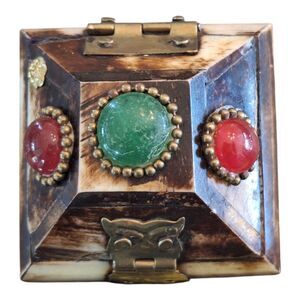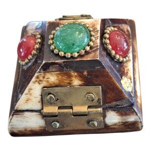 Trinket Box Cabachons Camel Bone & Brass Vintage Hand Crafted in India Ring Box