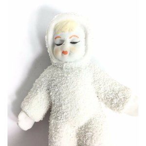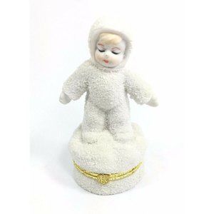 Trinket Box Porcelain Hinged Little Girl in Snow Suit Unmarked