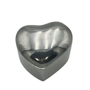Trinket Box Shiny Heart Shaped Chrome Metal Lid Keepsake Storage