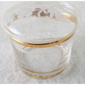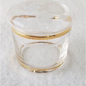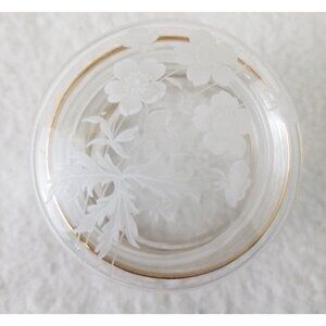 Trinket Box Vintage Round Crystal with Lid Etched/painted Flowers gold trim 2pc