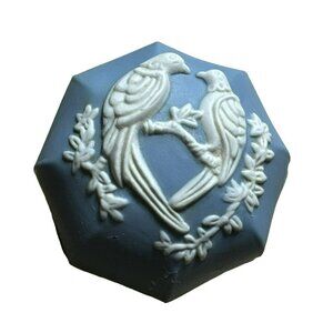 JCM Blue Ceramic Jasperware Lovebirds Trinket Box