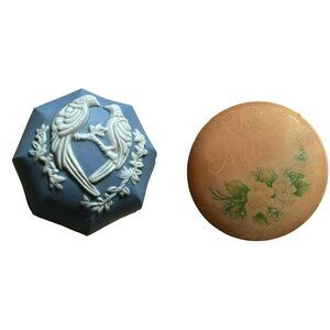 Trinket Boxes Vintage Lot of Two (2) Pink Alabaster "To Mother" Blue Jasperware