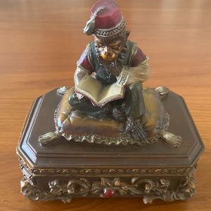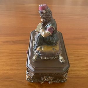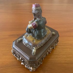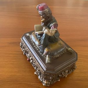 Trinket Jewelry Box Moroccan Monkey Wearing Fez Reading Book Vintage