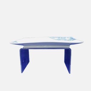 Trinket Serving Tray White Blue Floral Ceramic Chop Mark Vintage 8"