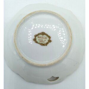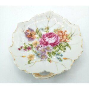 Trinket Tray Floral Leaf-Shaped Porcelain Dish Nasco Gold Trim Vintage 4" Japan