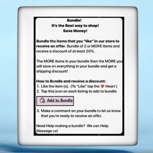 BUNDLE with other items to save on shipping. Add items to your Bundle by tapping the “+” shopping bag at the bottom of the listing