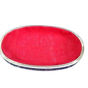 This is a Metal Embossed Relief Oval Trinket Box Red Velvet Lined