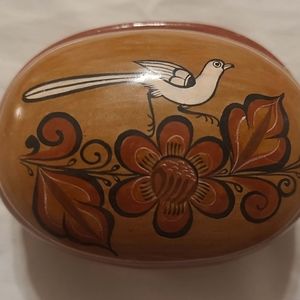 Talavera Hand Painted Floral / Bird Pottery Oval Covered Trinket Box Multicolored 3"