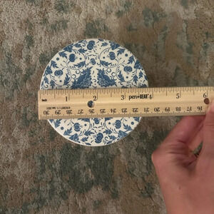 Trinket jar ceramic Sweet floral pattern blue and cream color