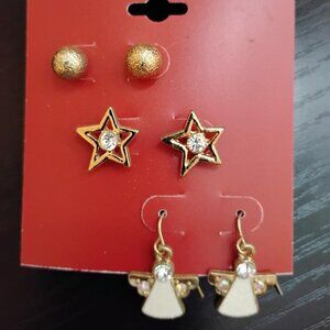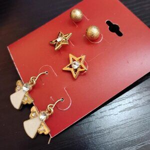 Trio Christmas Earrings. New. Gold Colored Balls, Stars and Angels. Kohl's Brand. Costume Jewelry. Retails $14.00. Festive.