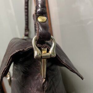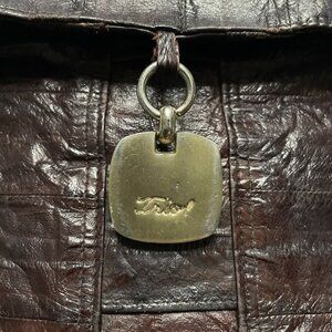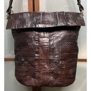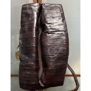 Trio! Mahogany Genuine Eel Skin Vintage Flap Zip Bucket Shoulder Bag Purse