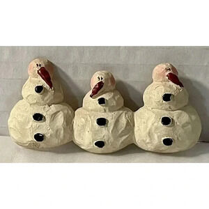 Trio Of Snowmen Holiday Christmas Winter Brooch 2 7/8 Inch x 1 1/4 Inch Resin