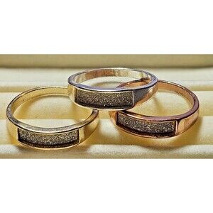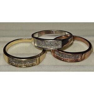 Trio of Rings w/ Sparkle Bands Silver Gold & Rose Gold Tones Sz 10.25