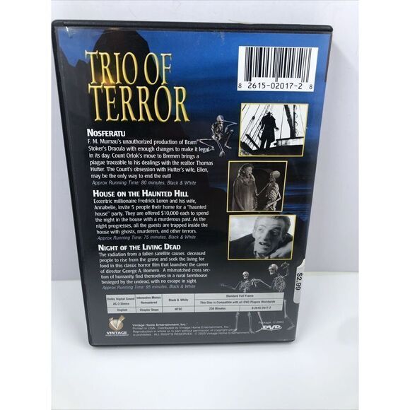 Trio of Terror - 3 Films (DVD, 2003, Collectors Edition) Vincent Price