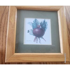 ▪︎DESCRIPTION: Three framed and matted pictures in glass and wood frames. Kitchen decor, vegetables