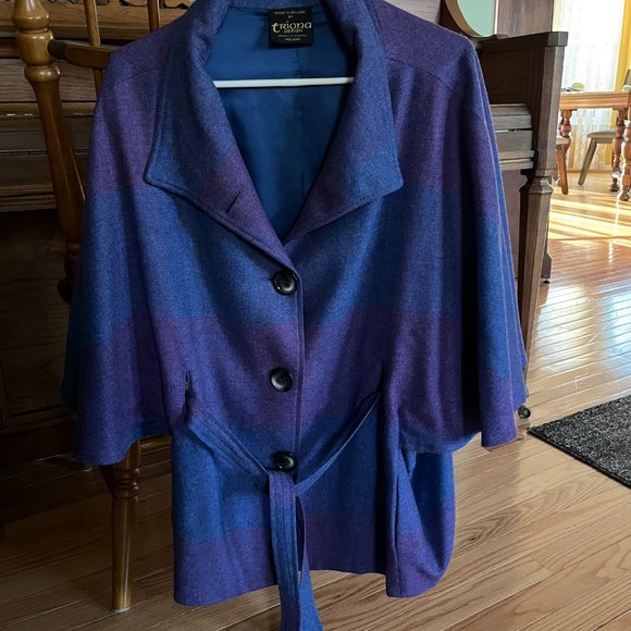 Gorgeous blue/purple wool cape from Ireland. It measures 31" long and is a medium size. Rarely worn and looks like new.