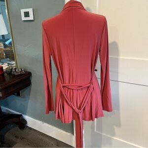 Triple 7 Mauve Stretch Knit Belted Open Cardigan Medium