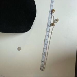 This hand made necklace features a delicate silver tone chain adorned with three polished brown agate stone pendants. Perfect for adding a touch of nature to any outfit. 26” chain with 14” drop. Great preowned condition.