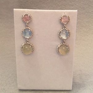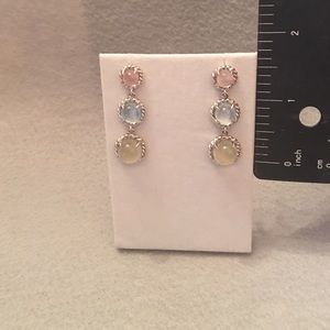 Natural rose quartz cabochon 6.0 mm. Natural sky blue topaz cabochon 8.0 mm. Natural Prehnite cabochon 10.0 mm. Silver. 925 unique design that compliment each stone for its own beauty. Just put them on and HAVE FUN !!!