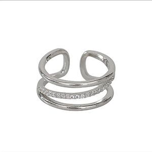 Triple Bling Ring adjustable in 925 silver & cubic zirconia