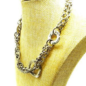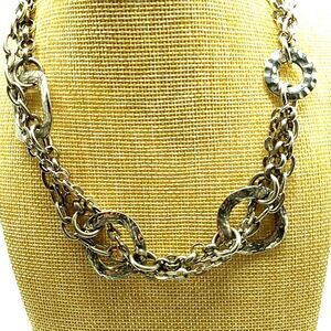 Triple Cable Link Silver-tone Necklace with Hammered Graduating Open Circles