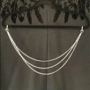 Triple Chain Link Silver Tone Hip Jeans Pant Belt Loop Chain
