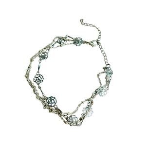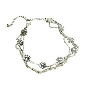 Triple Chain Silver Tone Cut Out Roses Anklet