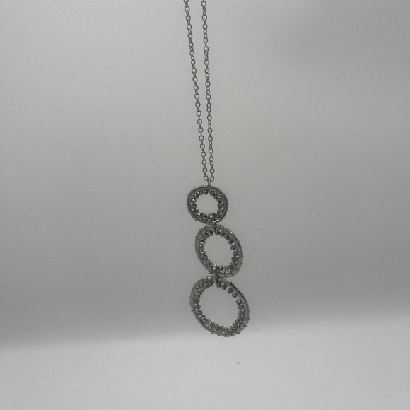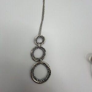 Triple Circles Pendant silver Necklace - total length is 14" as shown in picture with tape measure - clean, working clasp