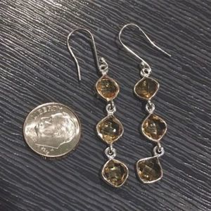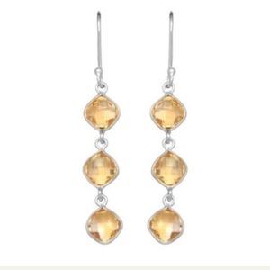 Triple Drop Cushion Cut Golden Citrine and Sterling Silver Earrings NWT