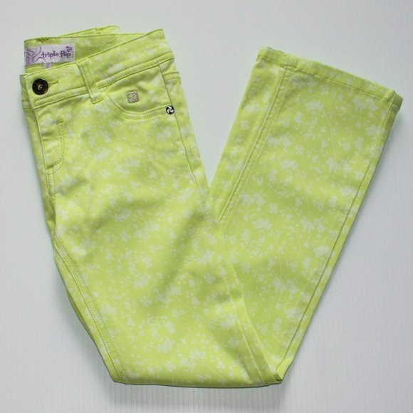 Triple Flip Boutique Girls Florescent Green Savannah Denim Pants Jeans size 8