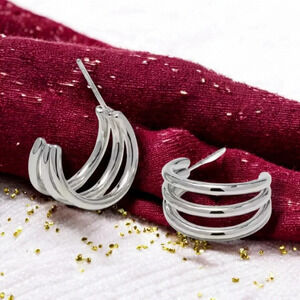 🆕️ Triple Hoop 18K White Gold Plated Earrings Hypoallergenic Dainty Elegant