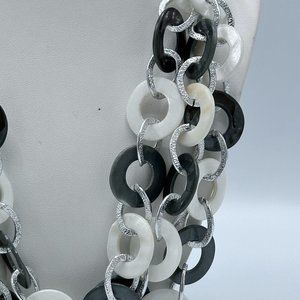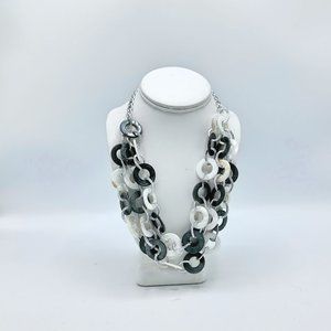 Triple Layer Boutique Gray and White Circular Silver-tone Necklace 24"