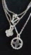 This silver tone necklace features a triple layered design with intricate charms. Perfect for adding a touch of sophistication to any outfit.