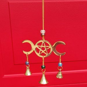 Triple Moon Pentagram Brass Wind Chime w/Beads & Bells. *****BUNDLE AND SAVE ******