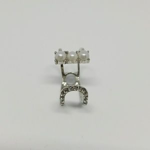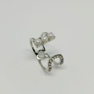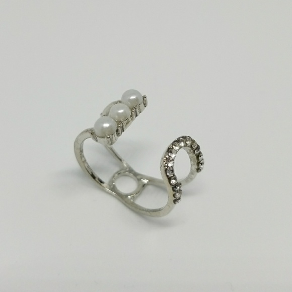 Cute and unique triple pearl multi stone ring in a silver tint.