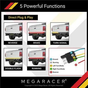 🧿 5 POWERFUL FUNCTIONS - Functions include: red brake light, running light, sequential amber left/right turn signals, white reverse light, and double flashing light. Safely