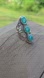 This intricately cut sterling silver ring with triple green onyx stones reminds me of Indian Aztec pieces. Simply gorgeous! Size 8.