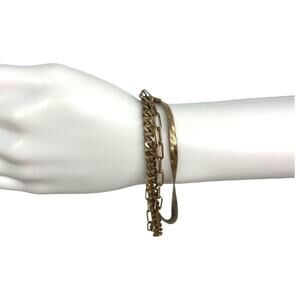 Triple Strand Metal Mixed Link Herringbone Layered Bracelet