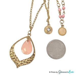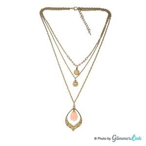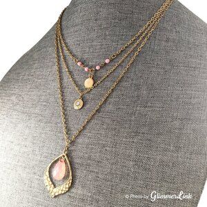 Triple Strand Pink & Gold Tone Layered Beaded Chain Necklace