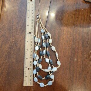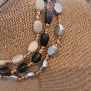 Triple Strand Wood Beaded Necklace Cream/Silver/Black