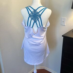 Aqua blue and navy musical note print tank.