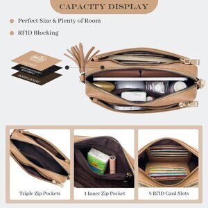 Triple Zip Small Crossbody Bag - Cell Phone Purse has 3 zipper compartments .1 main zipper Pocket , can hold the items you need for daily travel, such as wallet, cell phone, keys, cosmetics, etc. 2 x external zipper compartment, suitable for checkbooks, passports, receipts.8 x card slots suitable for credit cards, ID, and Driver's License.