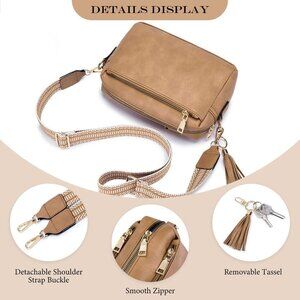 Triple Zip Small Crossbody Bag for women,Wide Strap Cell Phone Purse Shoulder Ha