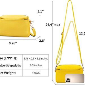 Cross body Bag Dimensions -The Dimensions measures 8.46*2.6*5.1 inches; with 0.16kg/0.35Ib it can better fits all cellphone Roomy and Lightweight.