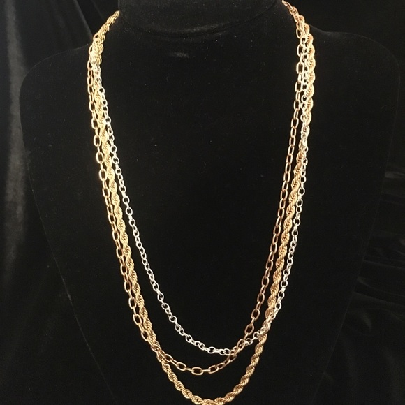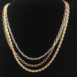 Triple chaintwo gold tone one silver tone very nice quality gold rope chain